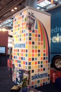 If you've been following along since we got here, you know that my company basically sells car paint. There are 2 divisions if you will, Car Refinishing and Commercial Transport. I mostly focus on Car Refinishing but do have overall responsibility for Commercial Vehicles too. So a little while back I got to go to a commercial vehicles trade show. You got it - BIG TRUCKS. Lots of big shiny trucks - it was huge. Here are a few pictures of the show and of our booth. Cool van, huh? Somebody from Akzo took us around and showed us some of our paint in action as well as some of our competitors. It was a good way to get a better understanding of the business. A little better anyway. I've still got a long way to go to understand the differences in car paints. Thankfully, I don't really have to to do my job. Phew. (Sikkens and Masons are two of our paint brand names.)